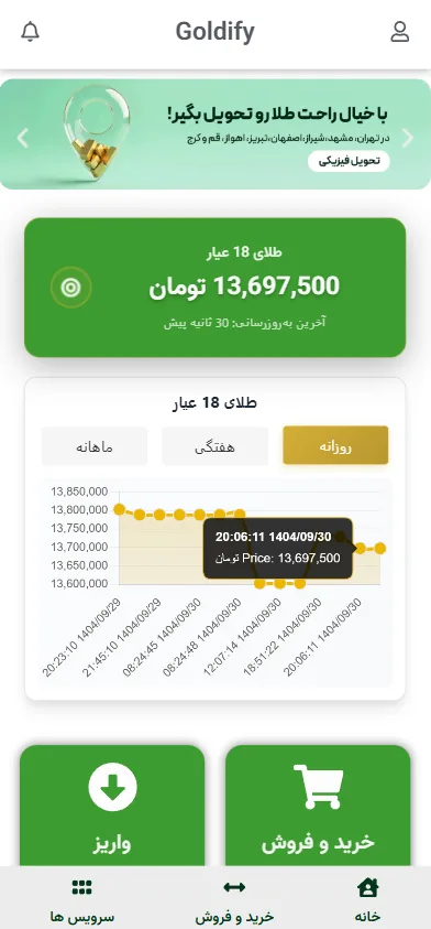 • امکان معامله بر اساس وزن (گرم) یا مبلغ (تومان)