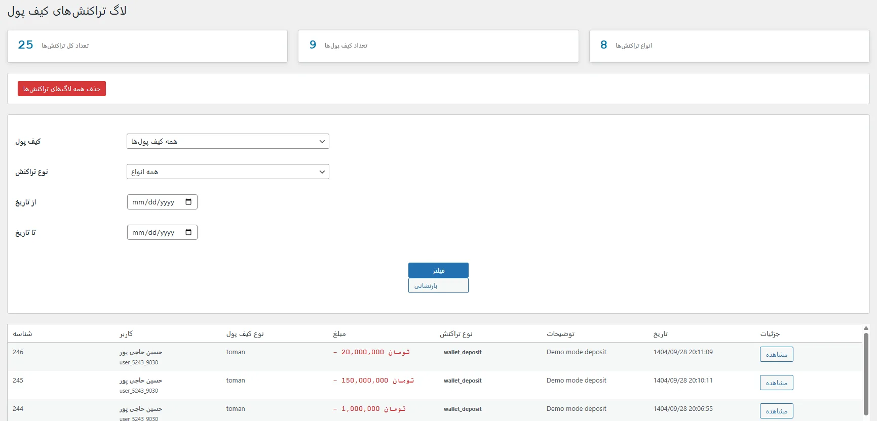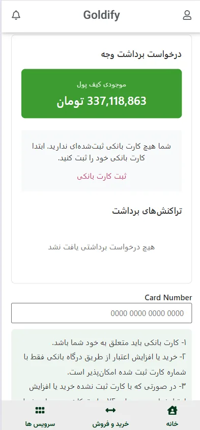 • کیف پول، تراکنش‌ها، کارت‌های بانکی