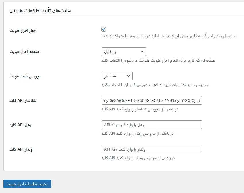 • اتصال به سرویس‌های احراز هویت شناسار، زهل و وندار