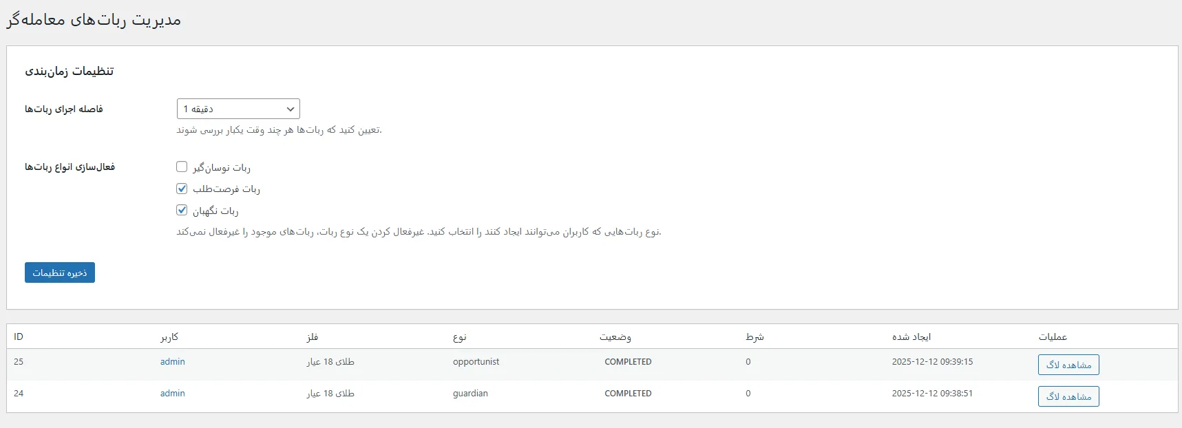 ✔ پشتیبانی از ربات‌های معامله‌گر خودکار