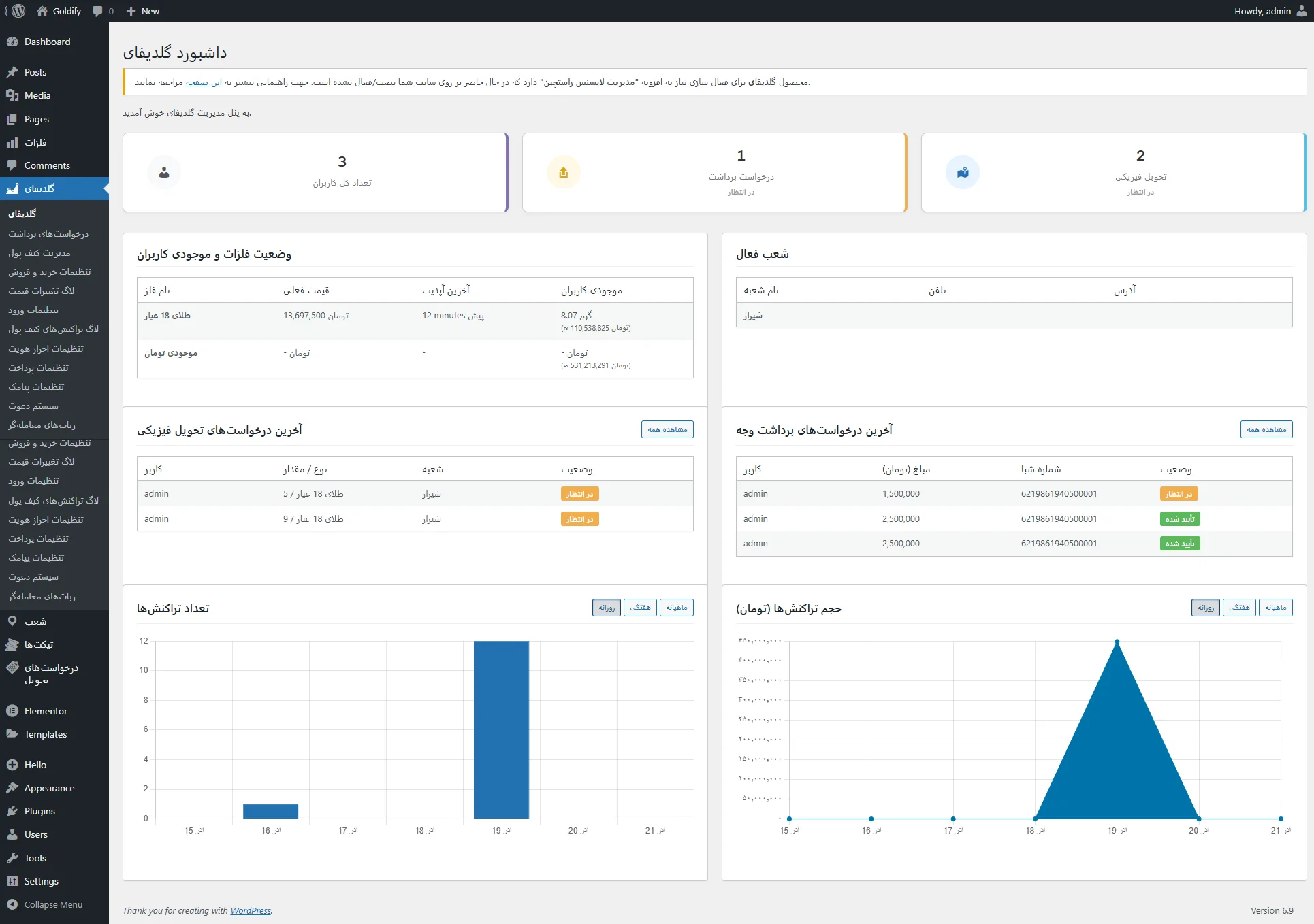 2 thoughts on "Goldify – افزونه حرفه‌ای معاملات طلا آنلاین برای وردپرس (خرید/فروش لحظه‌ای + کیف پول + احراز هویت امن)"